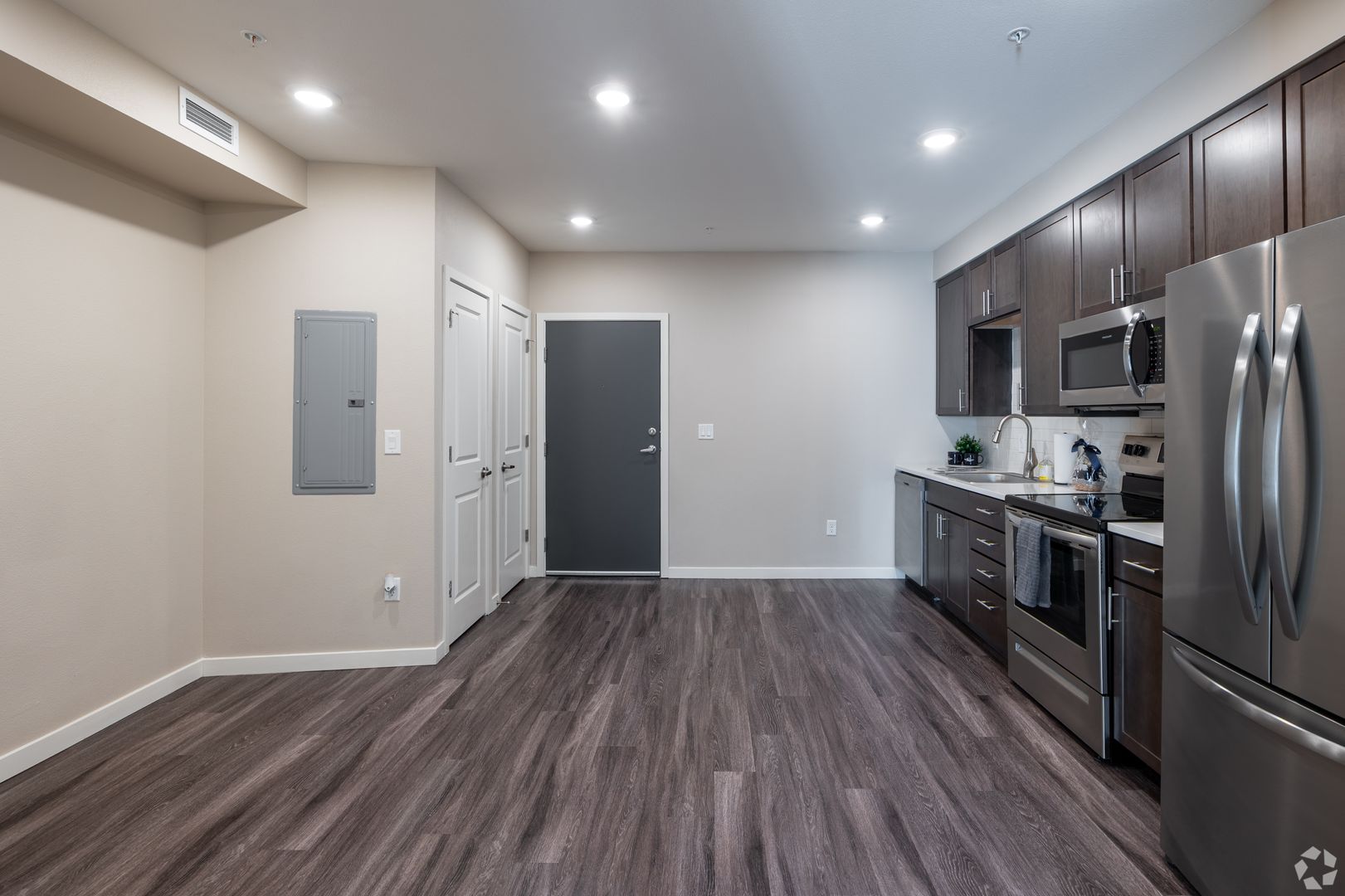 Each unit comes equipped with stainless steel appliances, dishwasher, microwave, in‑unit washer and dryer, and modern finishes throughout. Select layouts also feature efficient, open‑concept designs ideal for maximizing space and natural light.