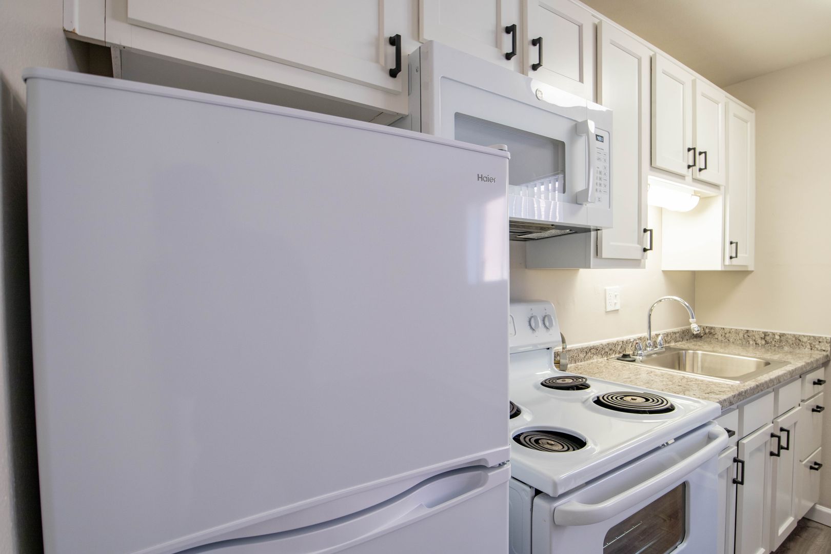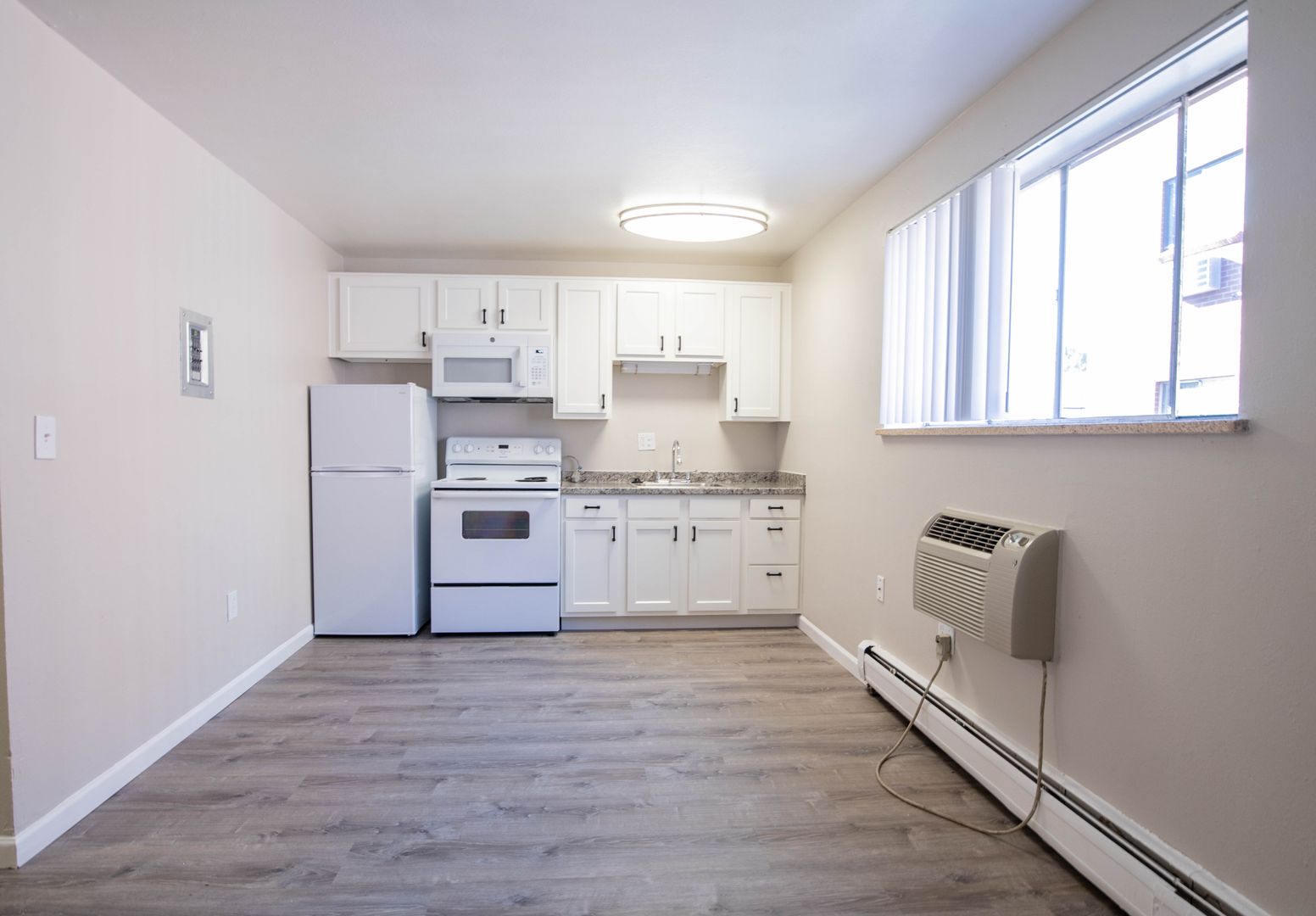 With studio, one and two-bedroom apartment homes, we have plenty of layouts for you to choose from to find the right fit. Each of our apartment homes comes standard with two-tone designer paint, modern vinyl flooring and adequate storage. Other amenities include brand-new Shaker style cabinets, sleek marble-like countertops and lustrous tile surrounds.