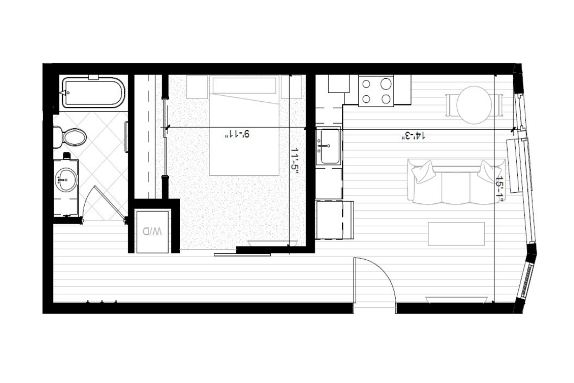 For those seeking one-bedroom apartments, you'll find the perfect match here. Each unit boasts a stackable washer and dryer, stainless steel appliances, a microwave, dishwasher, and sleek modern finishes. Studios even come with a pre-installed Murphy Bed for added convenience during your move!