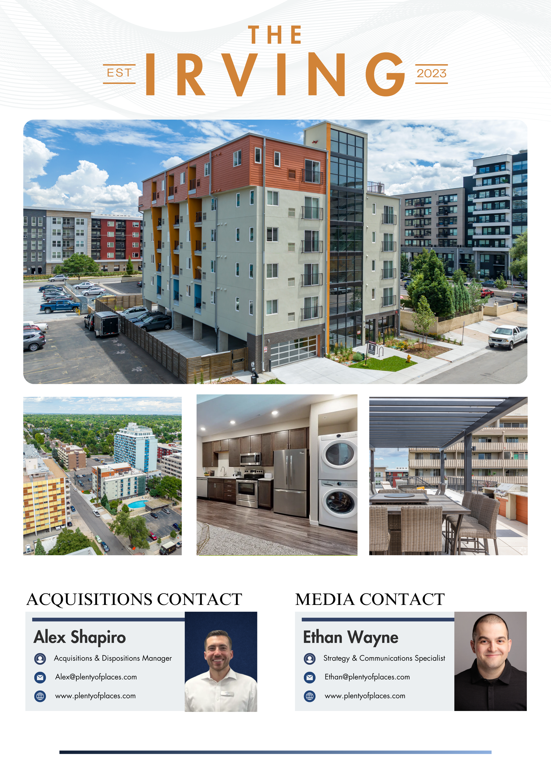 LONG BEACH, CA – January 9, 2026 – Plenty of Places Apartment Homes, a privately held real estate investment firm, has acquired The Irving, a Class A multifamily property in Denver's Hale neighborhood, for $10,350,000, or $235,227 per unit. Plenty of Places went under contract with no financing contingency.
